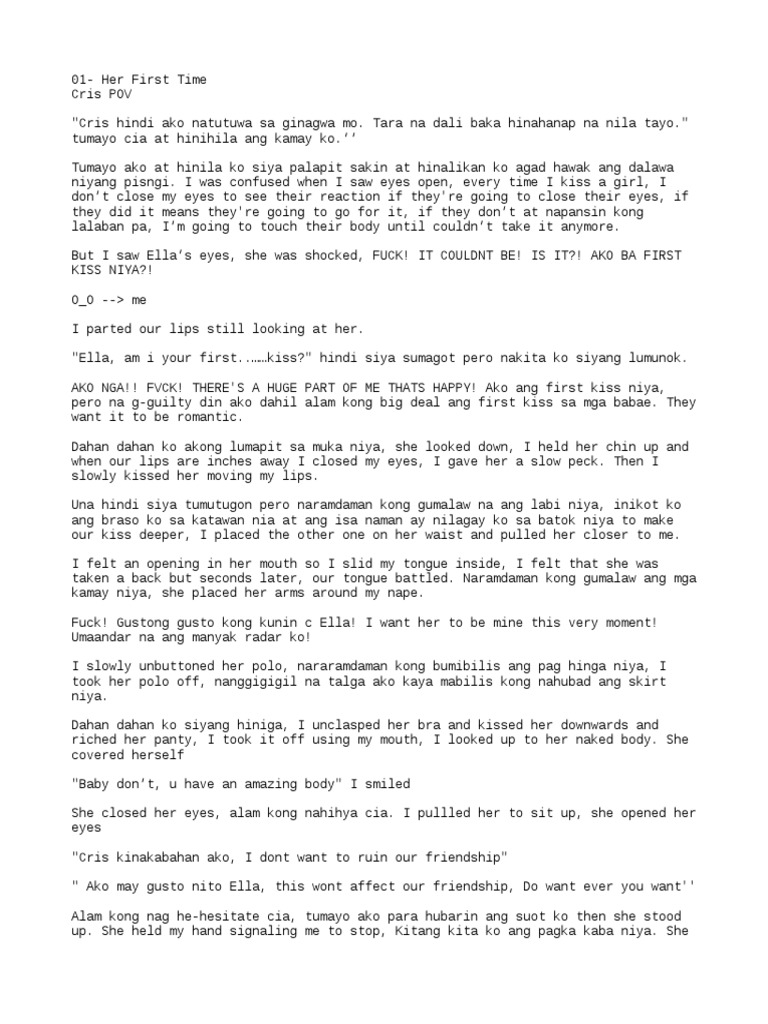 Last sept 17 habang nasa manila at ako nasa cebunagtext sya akin na magfriends nalang daw kamiat ang sagot ko sa kanya wag na sa text kasitexting is not enoughsa paguwi mo nlang dito tayo mag-usap for the last timeng umuwi siya noong 19th then on 20th of sept i surprise her on my birthdaynapansin ko sa kanya bigla siya natamimi ng nalaman niya. Di ko hahayaang di nya ito mainom lahat hanggang. Ang dumi ng bibig mo.